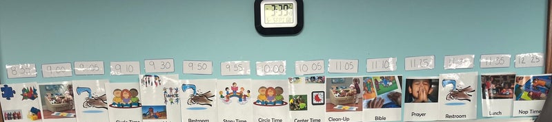 - Classroom schedules should be visibly displayed and reviewed often to give children a comprehensive view of the day. Some schedule examples show the order of circle time, restroom breaks, and play times.